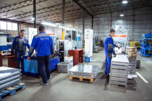 Завод обеспечивает полный цикл производства стеллажей от поиска и закупки сырья до выездом потребителям: